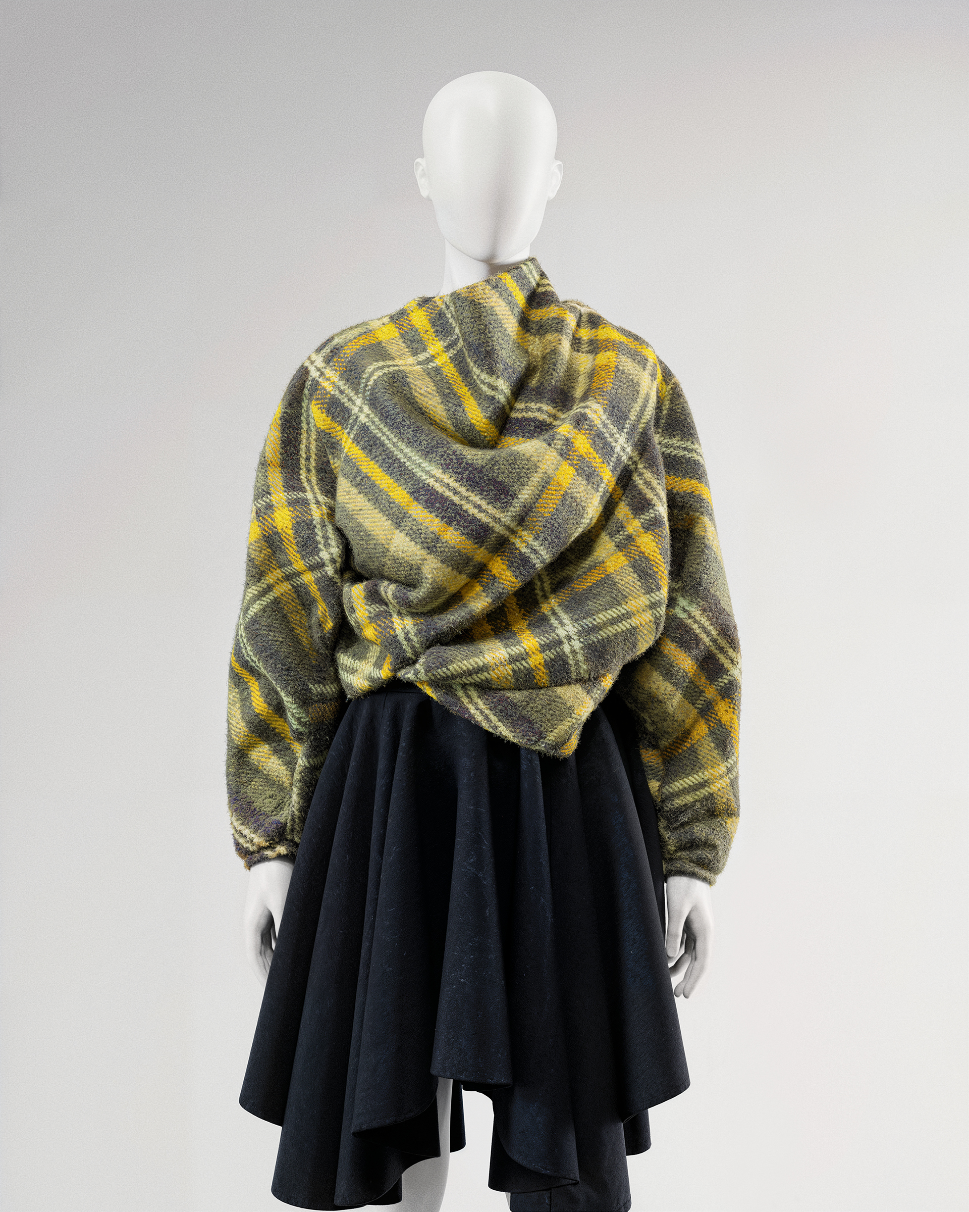 Digital fashion created with CLO3D. Inspired by the 2008 asymmetric plaid jacket by Rob Curry.