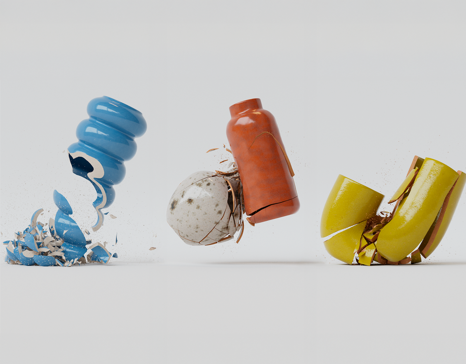 'Beauty in Destruction' is an exploration of motion and controlled chaos. Using Houdini’s rigid-body dynamics and rendered with Redshift, each object fractures in its own unique rhythm, revealing unexpected structure. This animation transforms destruction into design by turning breaking points into visuals.