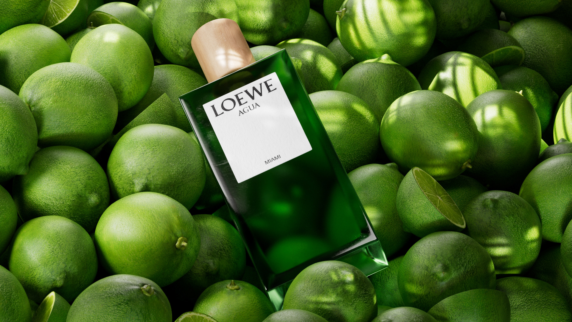 A personal project of a product-visualization study of Loewe Agua, brought to life in Houdini and rendered with Redshift. I focused on capturing the character of the fragrance through bold color, soft reflections, and subtle motion of the bottle within a bed of limes.